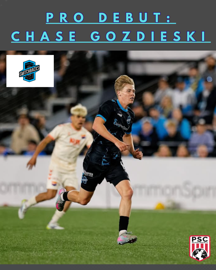 Nineteen-year-old Chase Gozdieski took a major step in his soccer journey this week, making his professional debut for USL Championship side Colorado Switchbacks. The moment marks a steady and impressive rise through the ranks of three USL academies after placement via PSC’s pro tryouts.